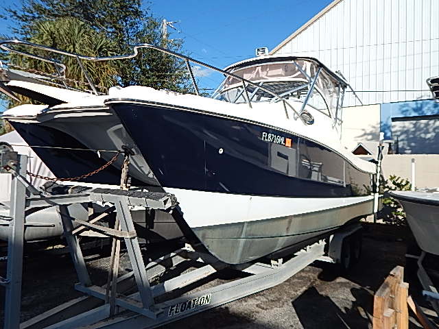 Length Overall .........28'0" Hull Length ...........26'6" Beam .........8'6" Draft...........12" Weight......6,800# Clearance .............................8'6" Fuel ..............................200 gals. Water .......32 gals. Max HP .....500